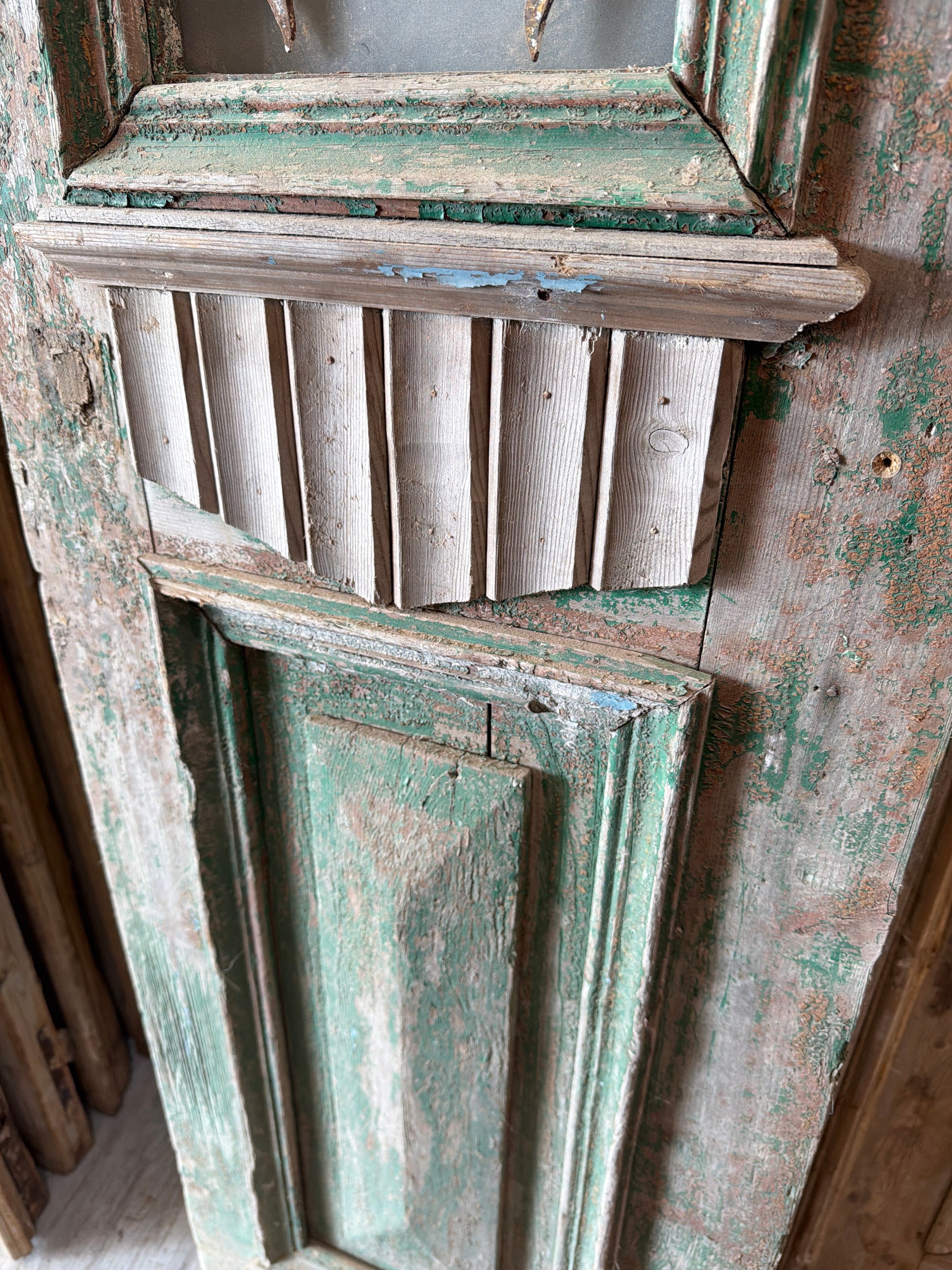 Description - Double Iron French Antique Door, crafted from massive pine wood. Over 100 years old, imported from Egypt.
