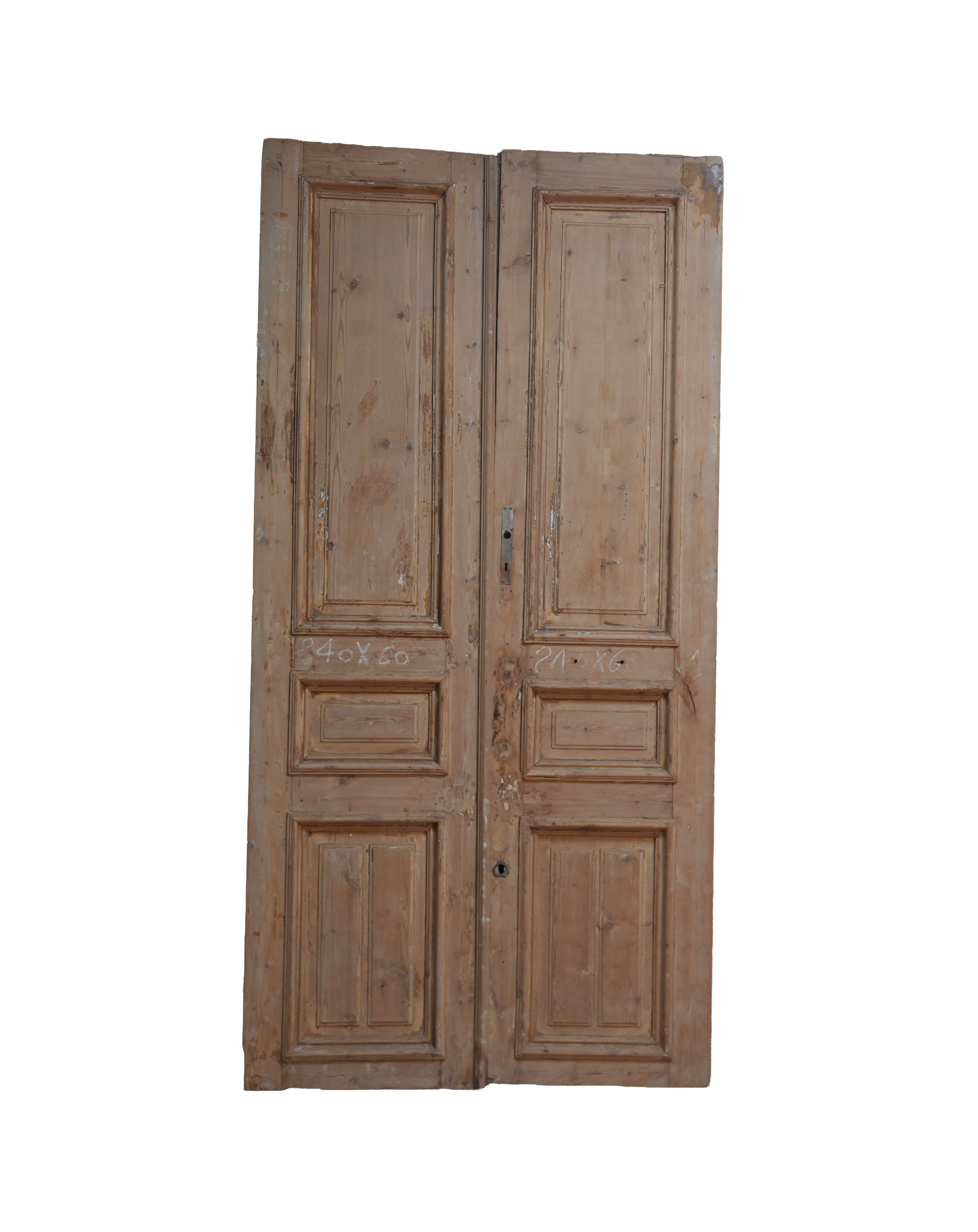 Description - French Raised Panel Antique Door, crafted from massive pine wood. Over 100 years old, imported from Egypt.